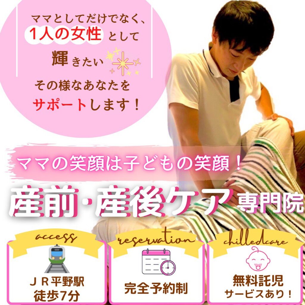 大阪市では珍しい、産前産後骨盤矯正専門/認定セラピスト/認定院でもあるためたくさんのママさんがご来院されています。